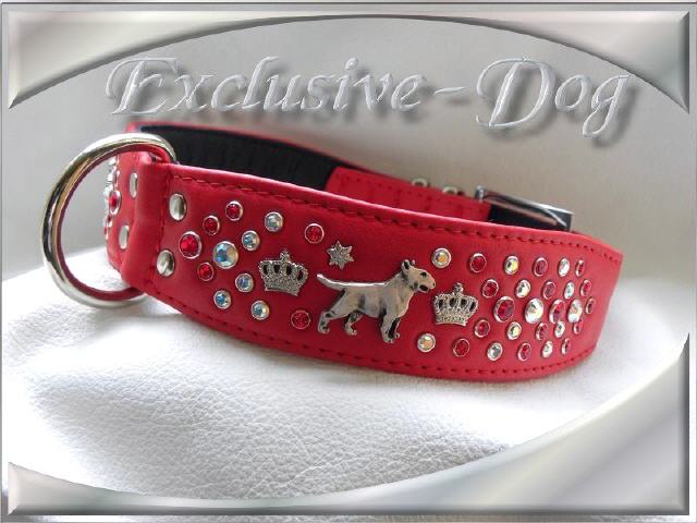 Bullterrier Halsbänder aus Leder mit SWAROVSKI ELEMENTS und / oder Nieten finden Sie hier.