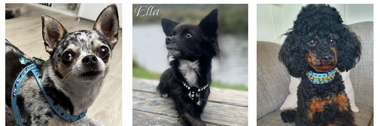 Edles Hundehalsband Rainbow Nieten, Lederhalsband für kleine Hunde z.b Malteser, Yorkshire-Terrier, Pudel Lederhalsband "Midnight"