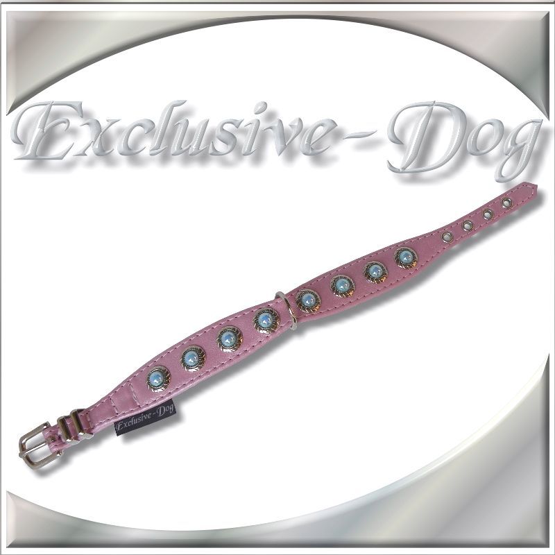 Rosa Hundehalsband Lederhalsband EXCLUSIVE-DOG