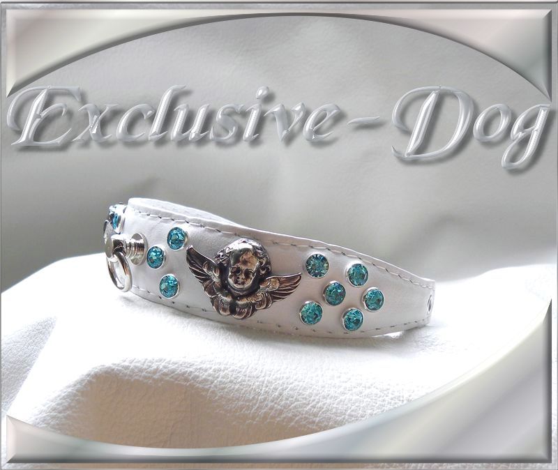 Lederhalsband XS Strasshalsband Hundehalsbänder mit SWAROVSKI ELEMENTS Nieten-Engel-Strass