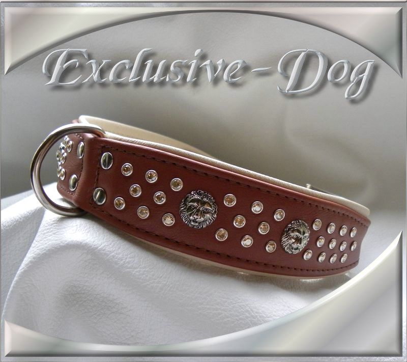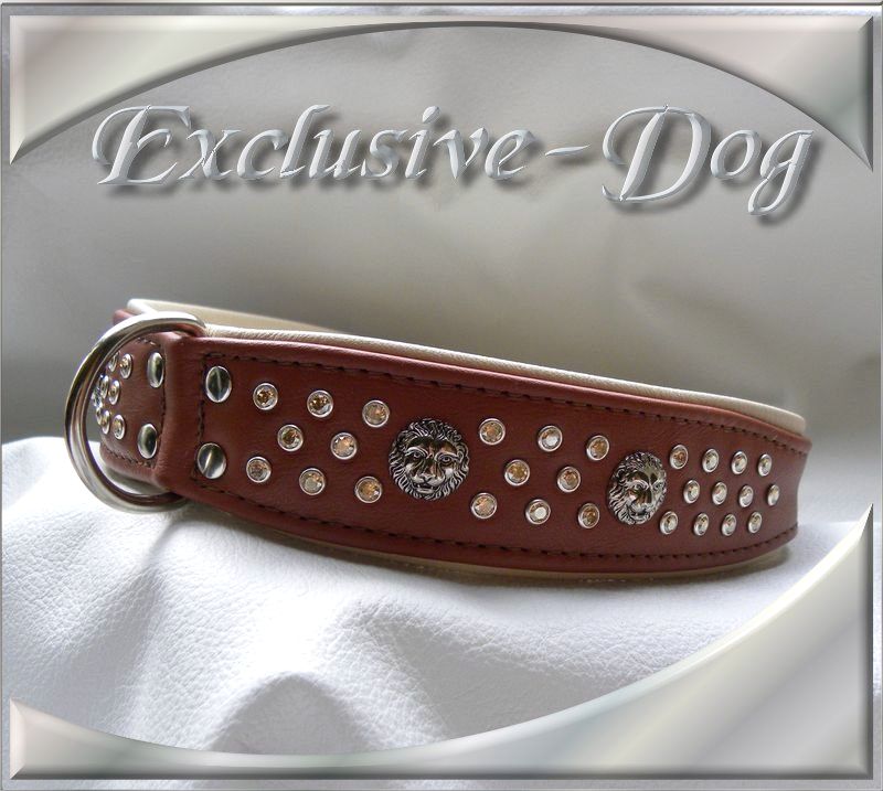 Lederhalsband Strasshalsbänder mit SWAROVSKI ELEMENTS Löwenkopf-Leder-Strass-Hund-Luxus- " Proper "