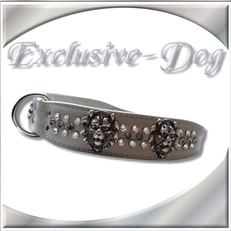Schäferhund Rhodesian Ridgeback Lederhalsband Strass mit SWAROVSKI ELEMENTS Löwenkopf Nieten XL Halsband