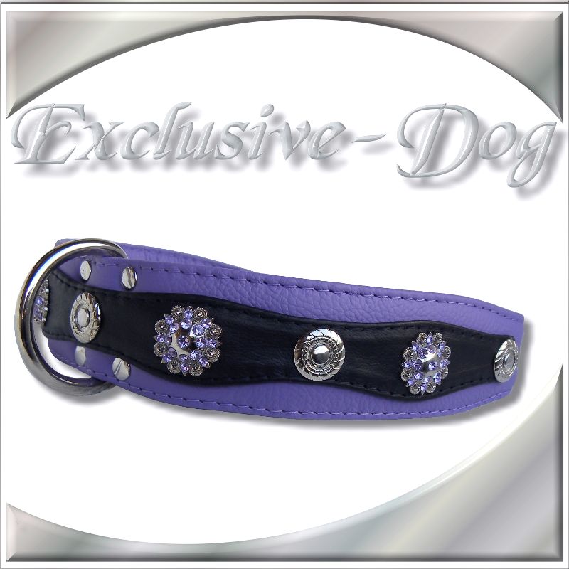 Lila Lederhalsband Leder Hundehalsband Strass für z.b. Französische Bulldogge, Dobermann, Dalmatiner, Schäferhund