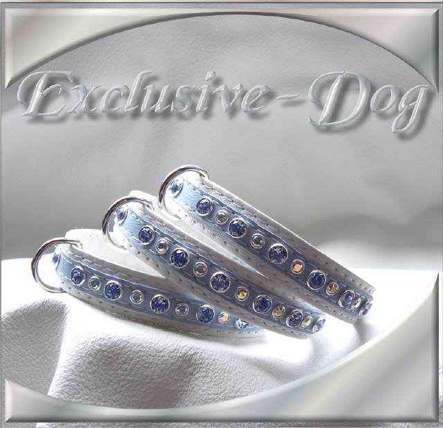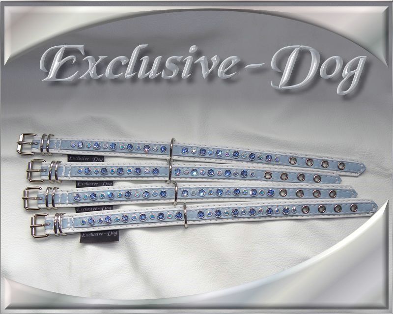 Diese Leder-Strass Halsbänder wurden aus hell-blauen Nappaleder hergestellt,