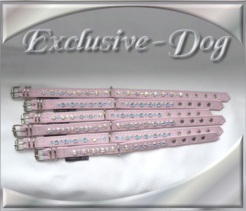 Diese XS Strass-Halsbänder wurden aus rosa Nappaleder hergestellt,