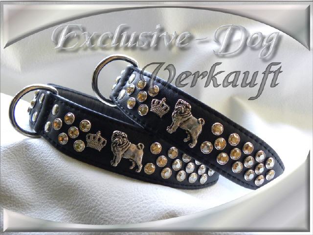 Mops Lederhalsband Strass Luxus Halsband "Shadow"