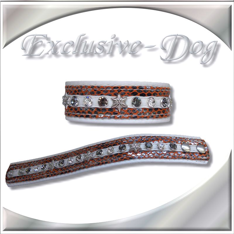 Dieses Strass Damen Armband wurde aus orange-farbenem Leder in Schlangenhaut optik,