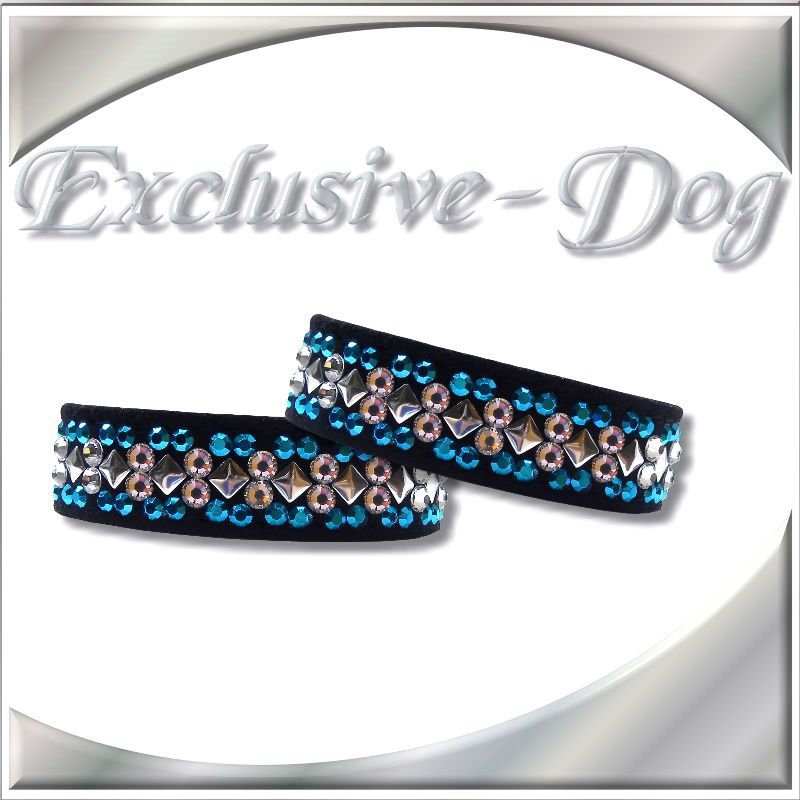 sowie mit chromfarbenen Pyramiden Nieten und blauen metallic Nieten.