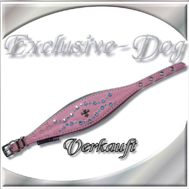 Rosa Windhundhalsband Lederhalsband Strasshalsband mit SWAROVSKI ELEMENTS für z.b. Whippet-Italienische Windspiel