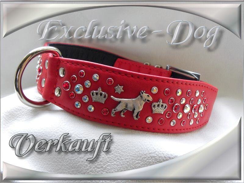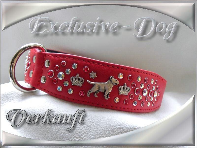Bullterrier Leder Hunde Halsband verziert mit SWAROVSKI ELEMENTS sowie Bullterrier Nieten