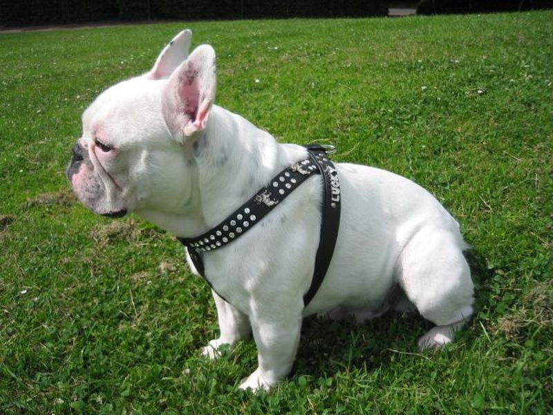Ledergeschirr Mops Brustgeschirr mit SWAROVSKI ELEMENTS Französische Bulldogge Strass Nieten Leder Geschirr " Hunde Geschirr Easy "