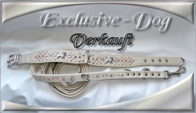 Halsband Leinen Set für die Französische Bulldogge French Bully Leder Strass Halsband " Lordly " mit SWAROVSKI ELEMENTS