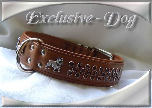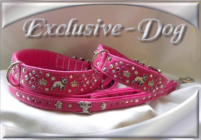 Halsband Leinen Set für die Französische Bulldogge French Bully Leder Strass Halsband " Lordly " mit SWAROVSKI ELEMENTS Dieses Französisch Bulldog Hunde Halsband + Leine