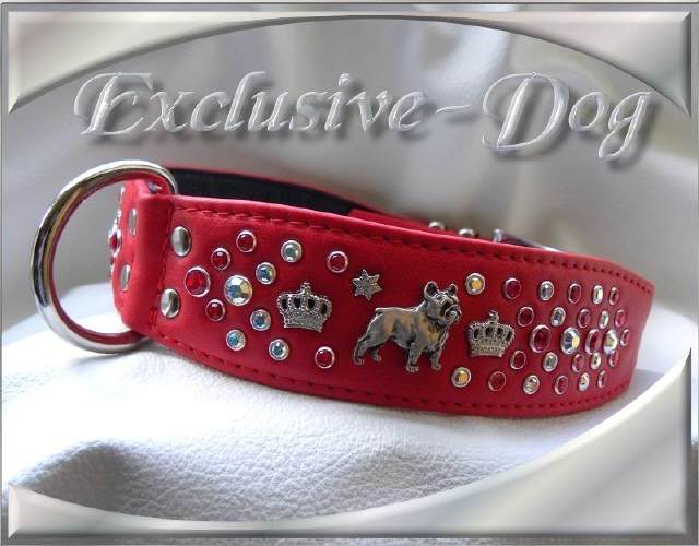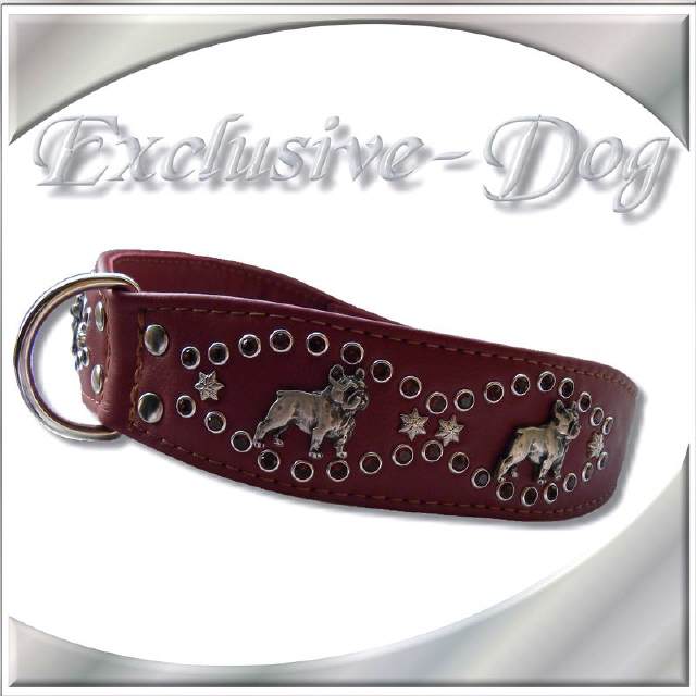 Lederhalsband Französische Bulldogge mit SWAROVSKI ELEMENTS Strasshalsband French Bully " Esoteric " Dieses Französisch Bulldog Hunde Halsband wurde aus dunkel - roten Nappaleder