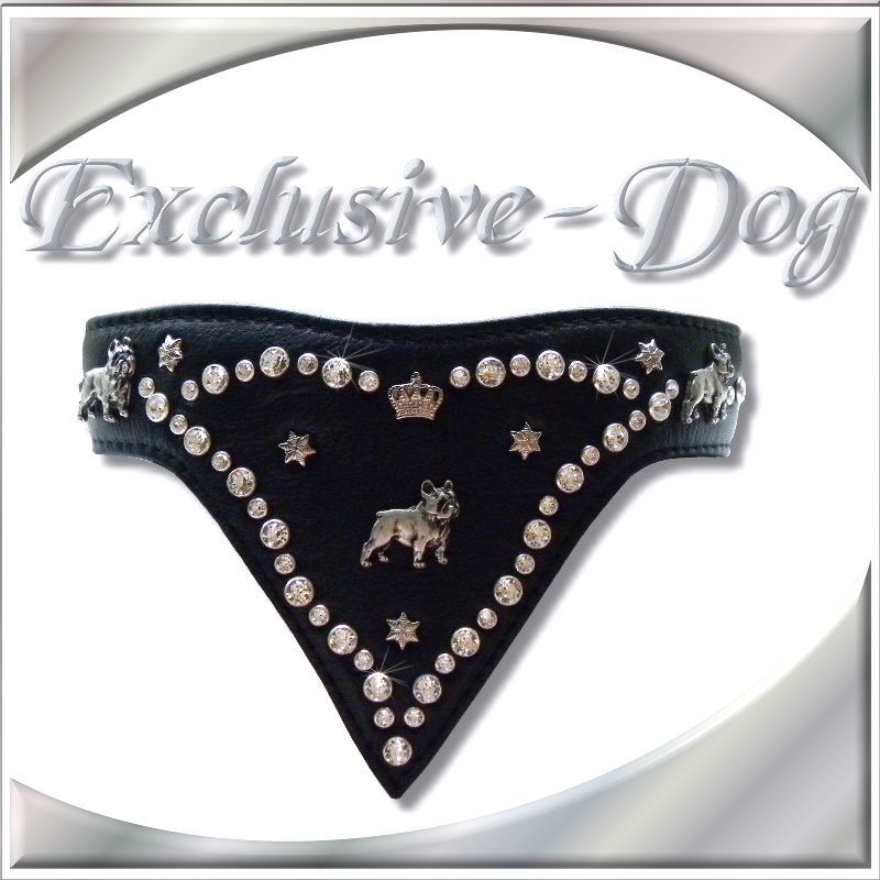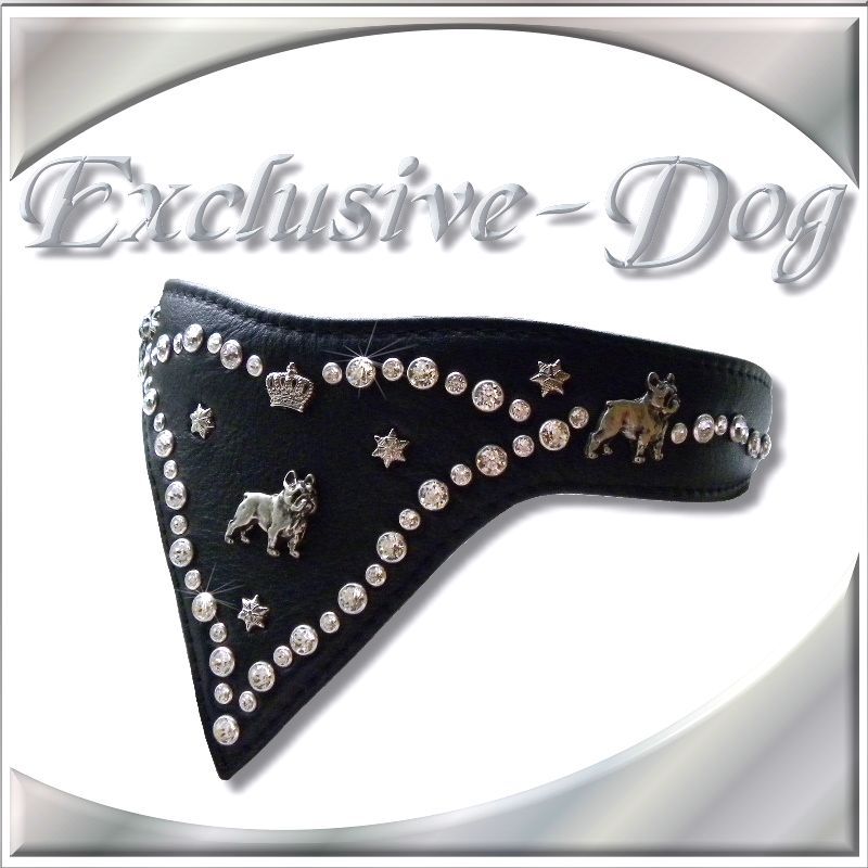 Französische Bulldogge Hundehalsband Lederhalsband mit SWAROVSKI ELEMENTS Strasshalsband Hundehalsband mit Tuch-dreieckstuch