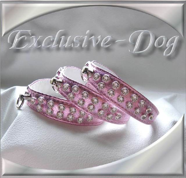 Rosa mini Halsband Chihuahua Prager Rattler Strasshalsband mit SWAROVSKI ELEMENTS made by EXCLUSIVE-DOG