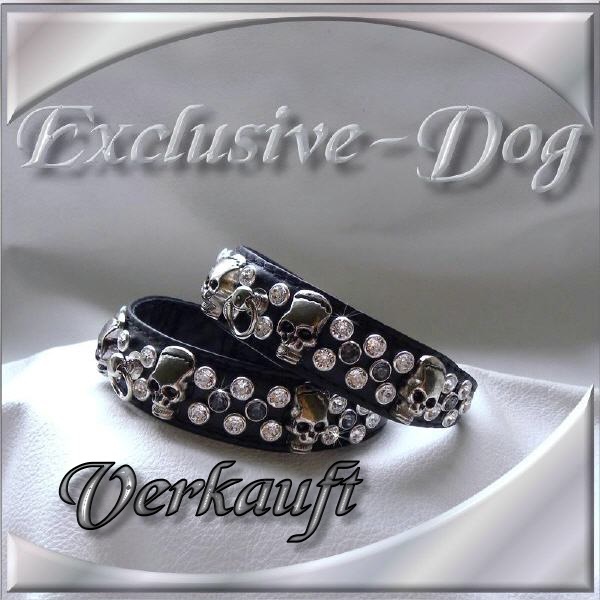 Skull Totenkopf Lederhalsbänder XS Yorkshire Terrier Strass mit SWAROVSKI ELEMENTS Strasshalsbänder
