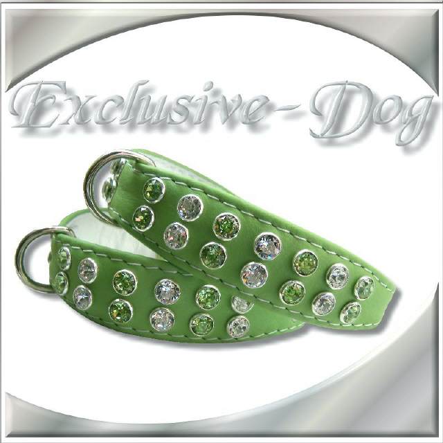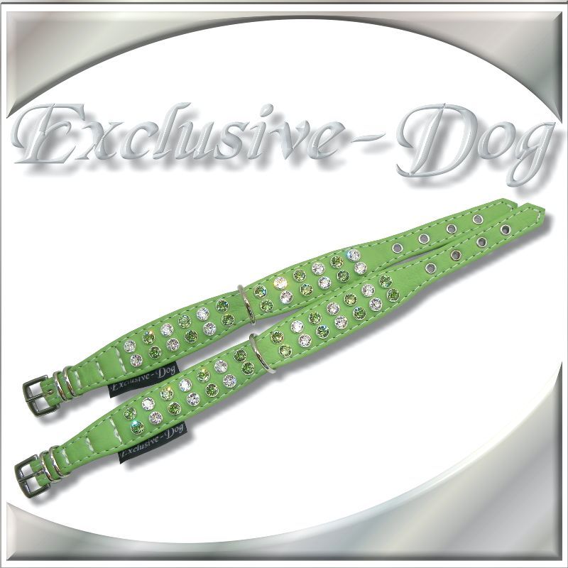 Diese Strasshalsbänder wurden aus grünen Nappaleder hergestellt,