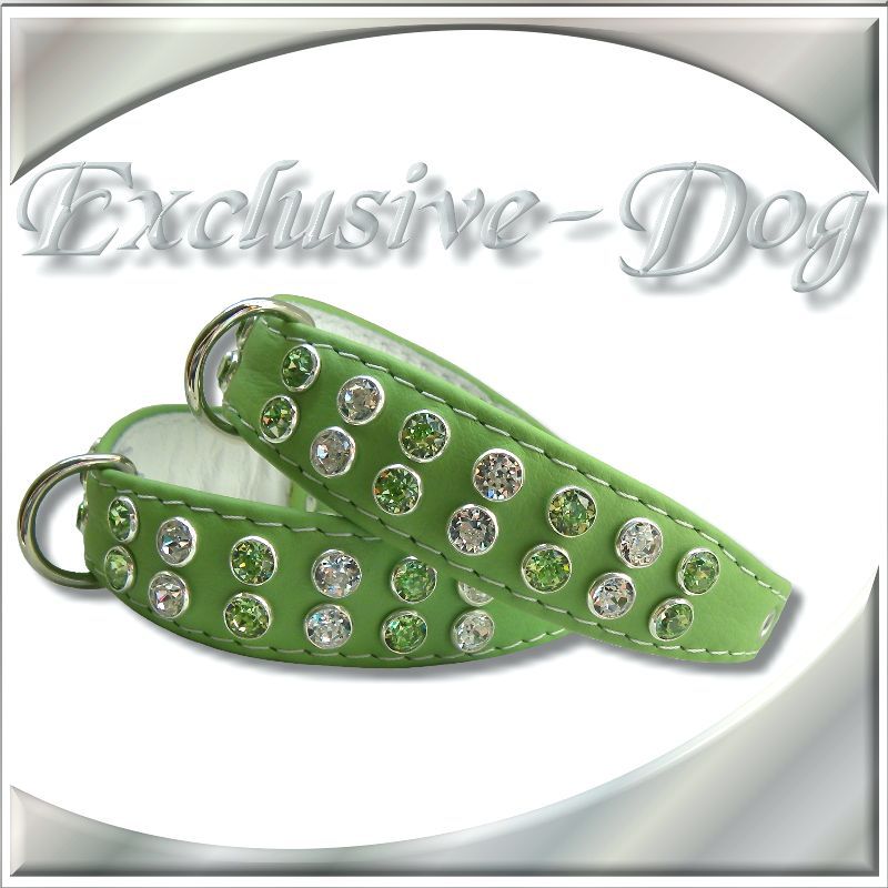 Grünes Strass Hunde Halsband XS Lederhalsband mit SWAROVSKI ELEMENTS Strasshalsband für z.b. Yorkshire Terrier Chihuahua