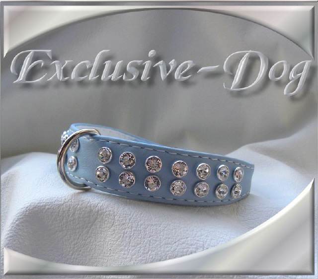 Dieses XS Strass Halsband wurden aus blauen Nappaleder hergestellt,