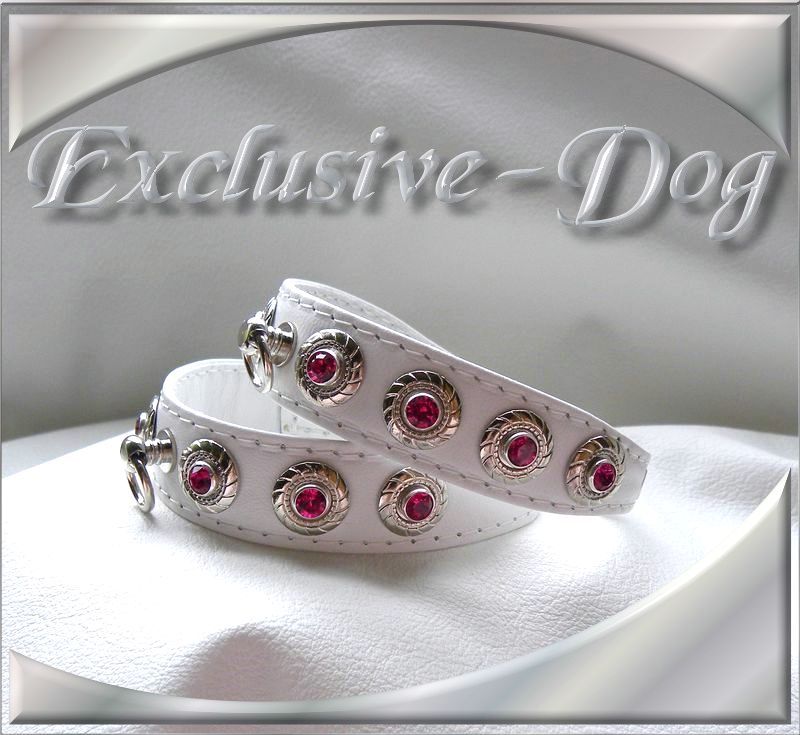 Diese kleinen Strass-Halsbänder wurden aus weißen Ross-Nappaleder
