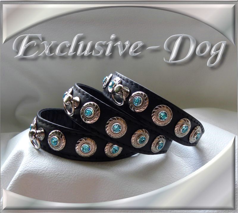 Diese XS Strasshalsbänder wurden aus schwarzen Ross-Nappaleder