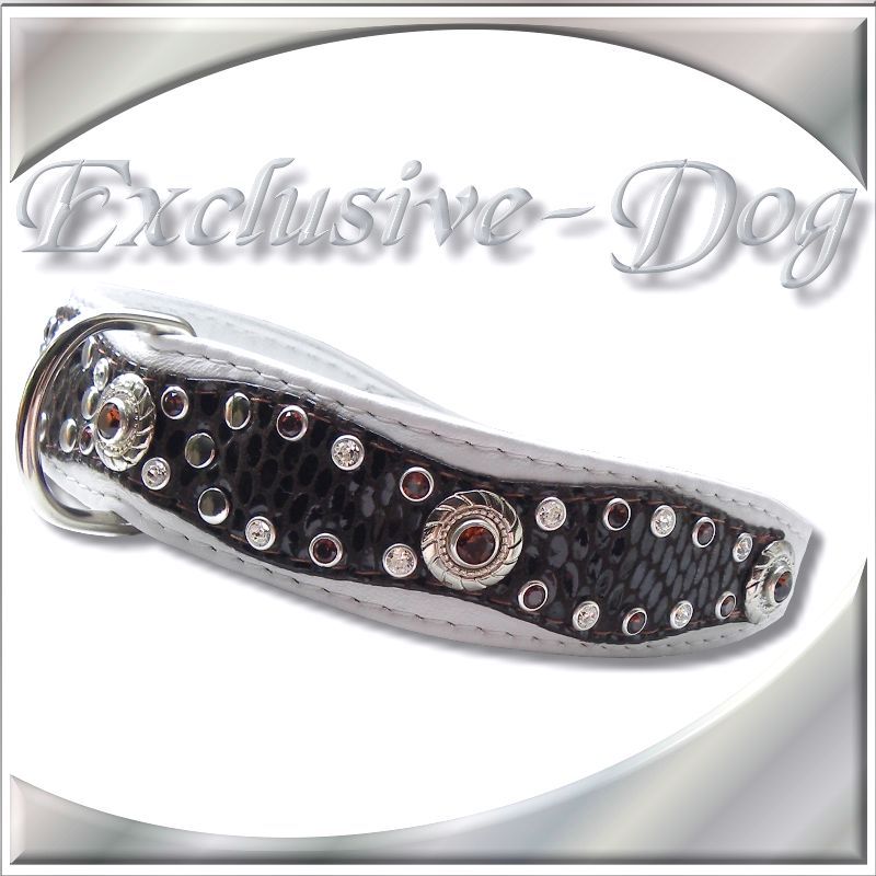 Hundehalsband Schlangen Print Strass braun Leder
