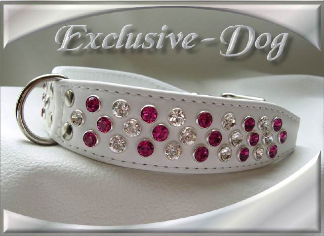 Rosa Lederhalsbänder Hundehalsbänder mit SWAROVSKI ELEMENTS für z.b. Cocker Spaniel - Windhund - Mops " Lederhalsband JUICY "