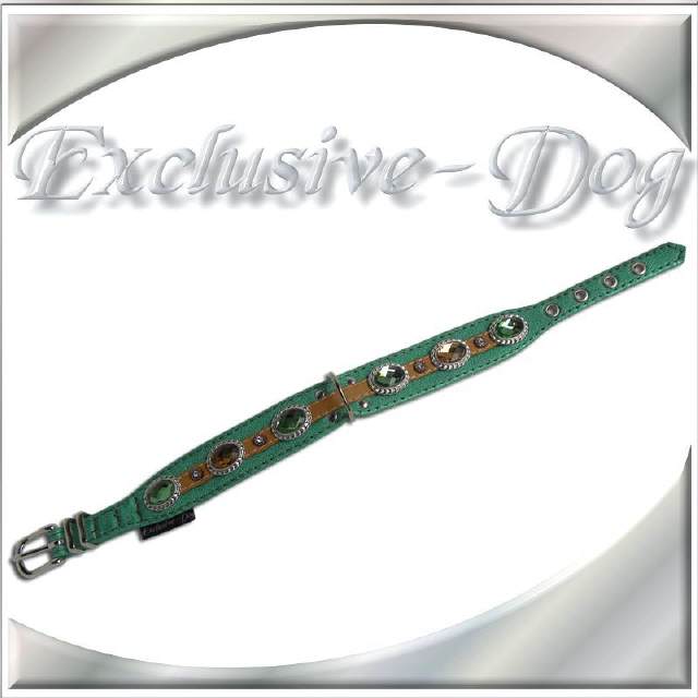 Exclusive-Dog Hundehalsband Lederhalsband, grünes Strasshalsband für .z.b. Mops-Cocker Spaniel