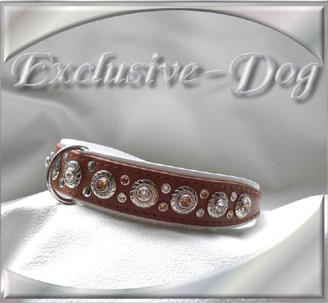 Dieses Strasshalsband wurde aus cognac farbenen Nappaleder hergestellt,