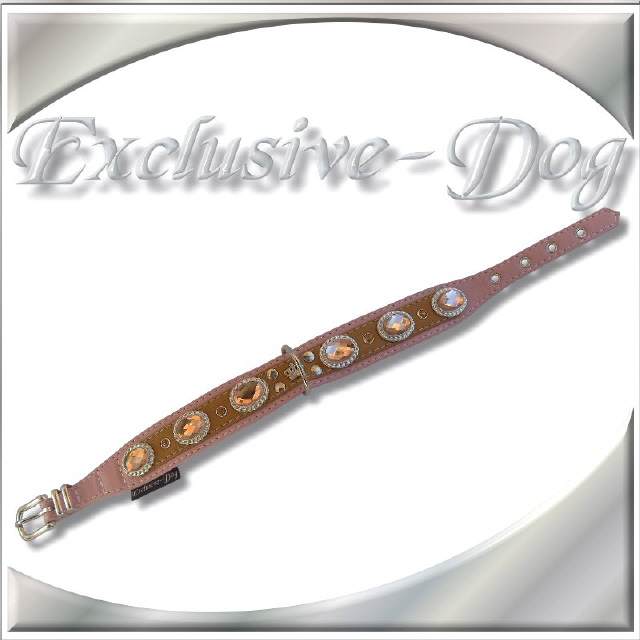 Rosa-Cocnac farbenes Hundehalsband Strass Lederhalsband, mit SWAROVSKI ELEMENTS für z.B. Cocker Spaniel, Mops