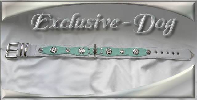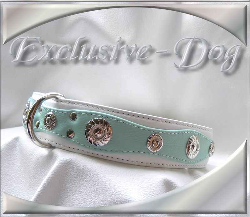 Dieses Leder Hundehalsband wurde aus weißen / mint farbenen Nappaleder gefertigt,
