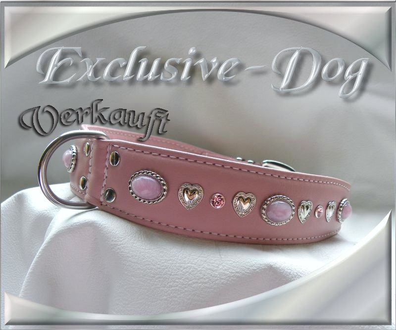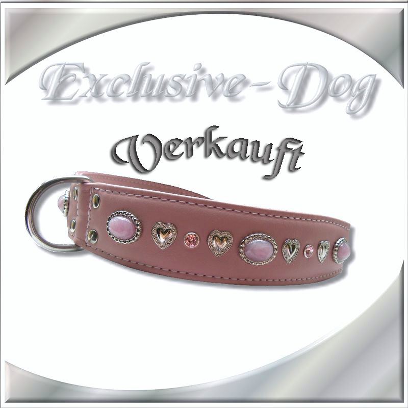 Lederhalsband rosa Hundehalsband mit Strass"Burnet