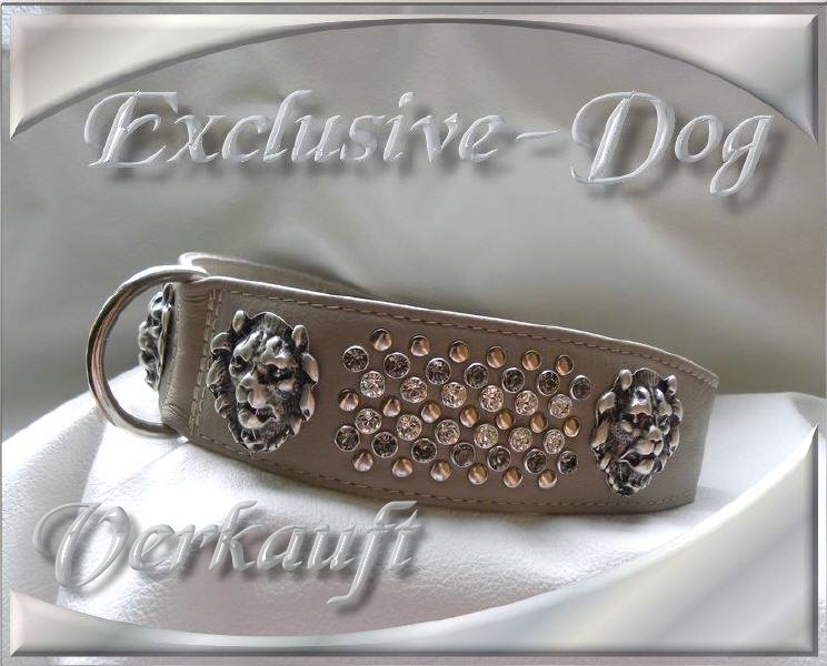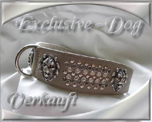 Dog Collar Leder Hunde Halsbänder Halsband mit Löwenköpfen sowie SWAROVSKI ELEMENTS verziert " Noble Leo "