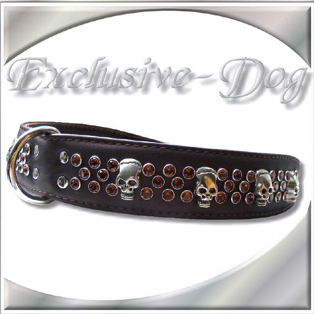 • XL Hundehalsband Lederhalsband Skull Strass Unikat
