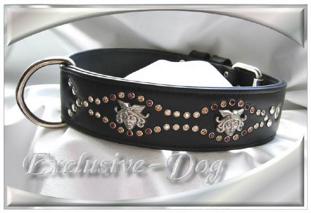 Dog Collar Leder Hunde Halsbänder Halsband mit Löwenköpfen sowie SWAROVSKI ELEMENTS verziert " Noble Leo "