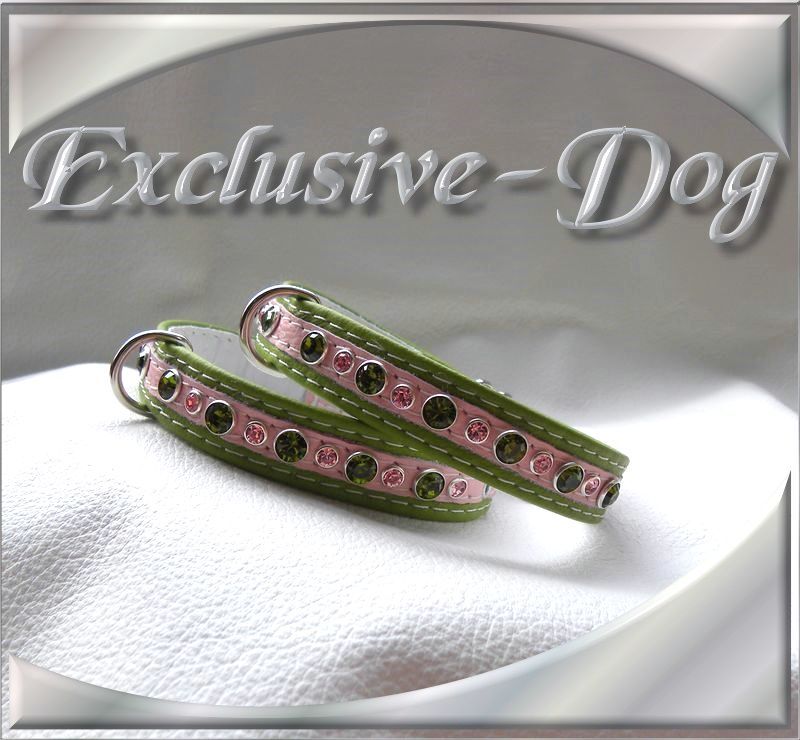 Diese XS Strasshalsbänder wurden aus aus grün/rosa farbenen Nappaleder hergestellt,