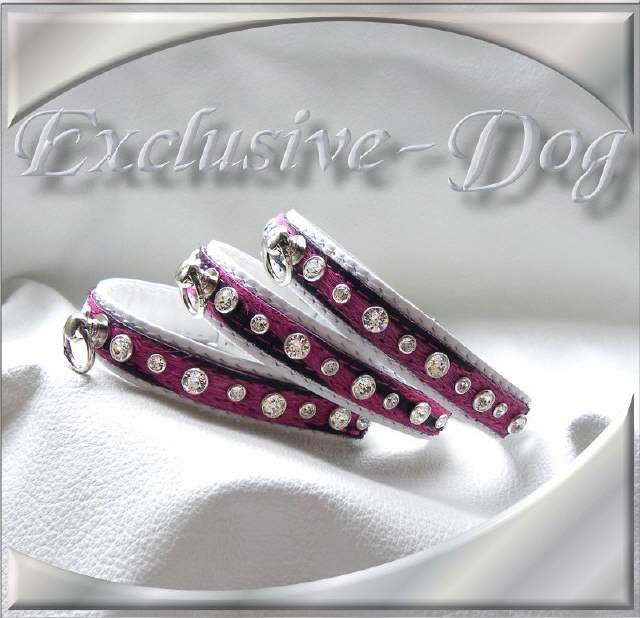 Pink - Rosa Fell Strass Leder Hundehalsband mit SWAROVSKI ELEMENTS Chihuahua Prager Rattler XS Lederhalsband " Strasshalsband 8887 "