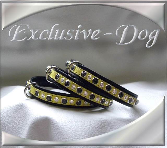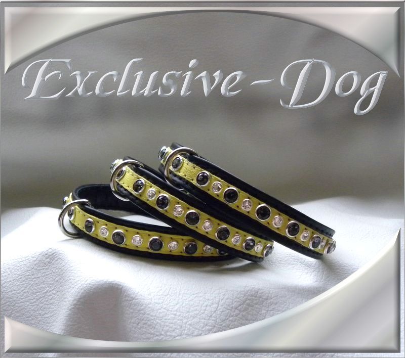 Diese kleinen Halsbänder wurden aus aus schwarz / gelben Nappaleder hergestellt.