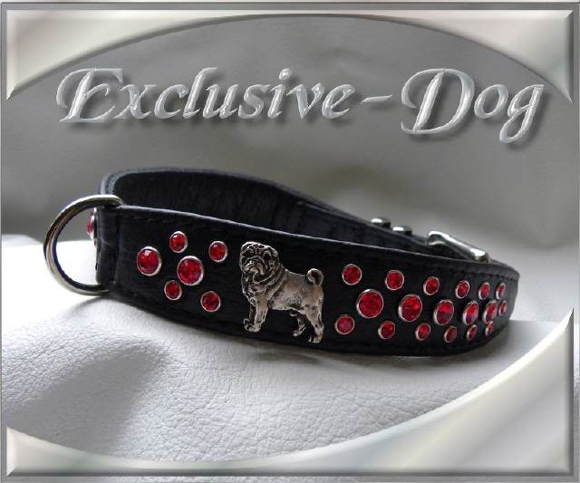 Mopshalsband mit Swarovski Elements verziert " Pug Dog "