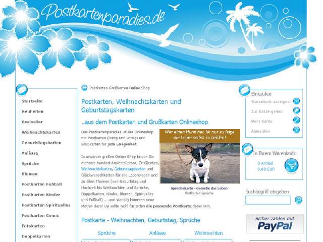 In der Rubrik eine große Auswahl an schönen und lustigen Hundepostkarten, und zwar sowohl für eingefleischte Hundefans als auch für diejenigen, die über das Zusammenleben von Hund und Herrchen auch mal lachen können.