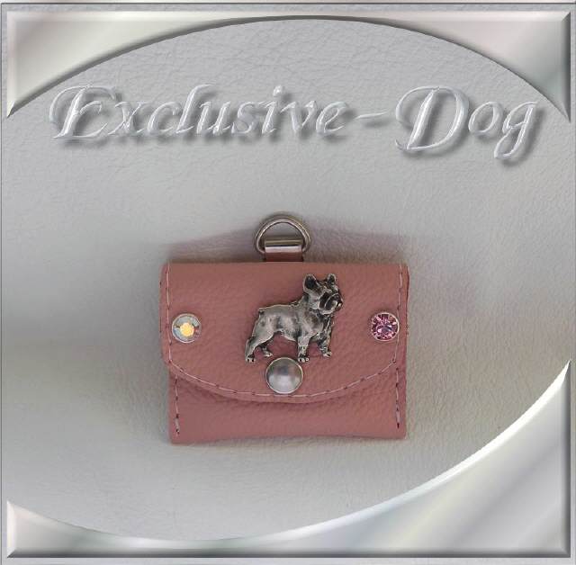 Exclusive, edle Halsband-Täschchen passend zum French Bulldog Halsband " Select " Zur Unterbringung von Addresse und/oder Steuermarke. Aus rosa Nappaleder gefertigt und mit einem Druckknopf vers...