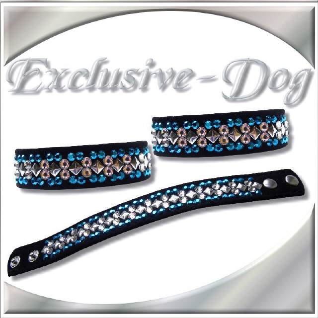 sowie mit chromfarbenen Pyramiden Nieten und blauen metallic Nieten.
