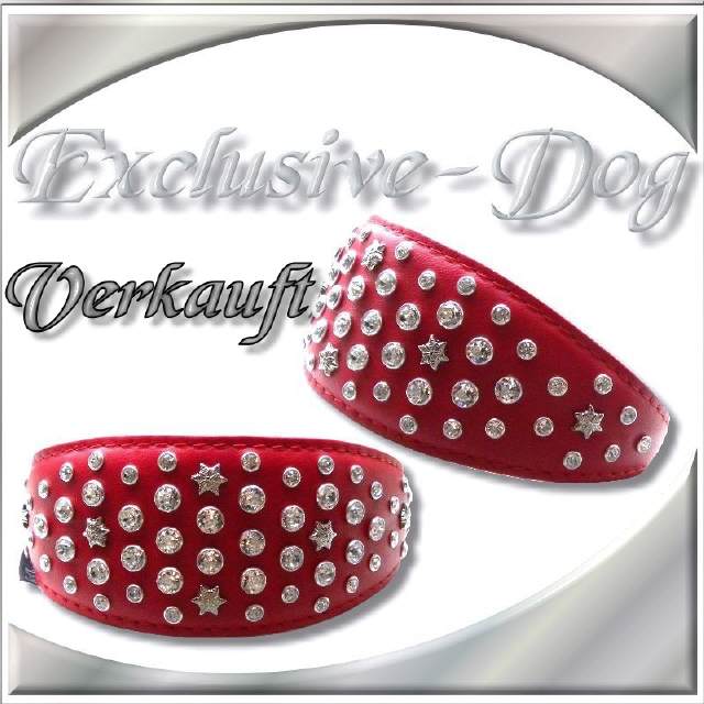 Whippet Windhundhalsbänder rot Strass Leder Halsband mit SWAROVSKI ELEMENTS für z.b. Italienisches Windspiel-Whippet-Windhund